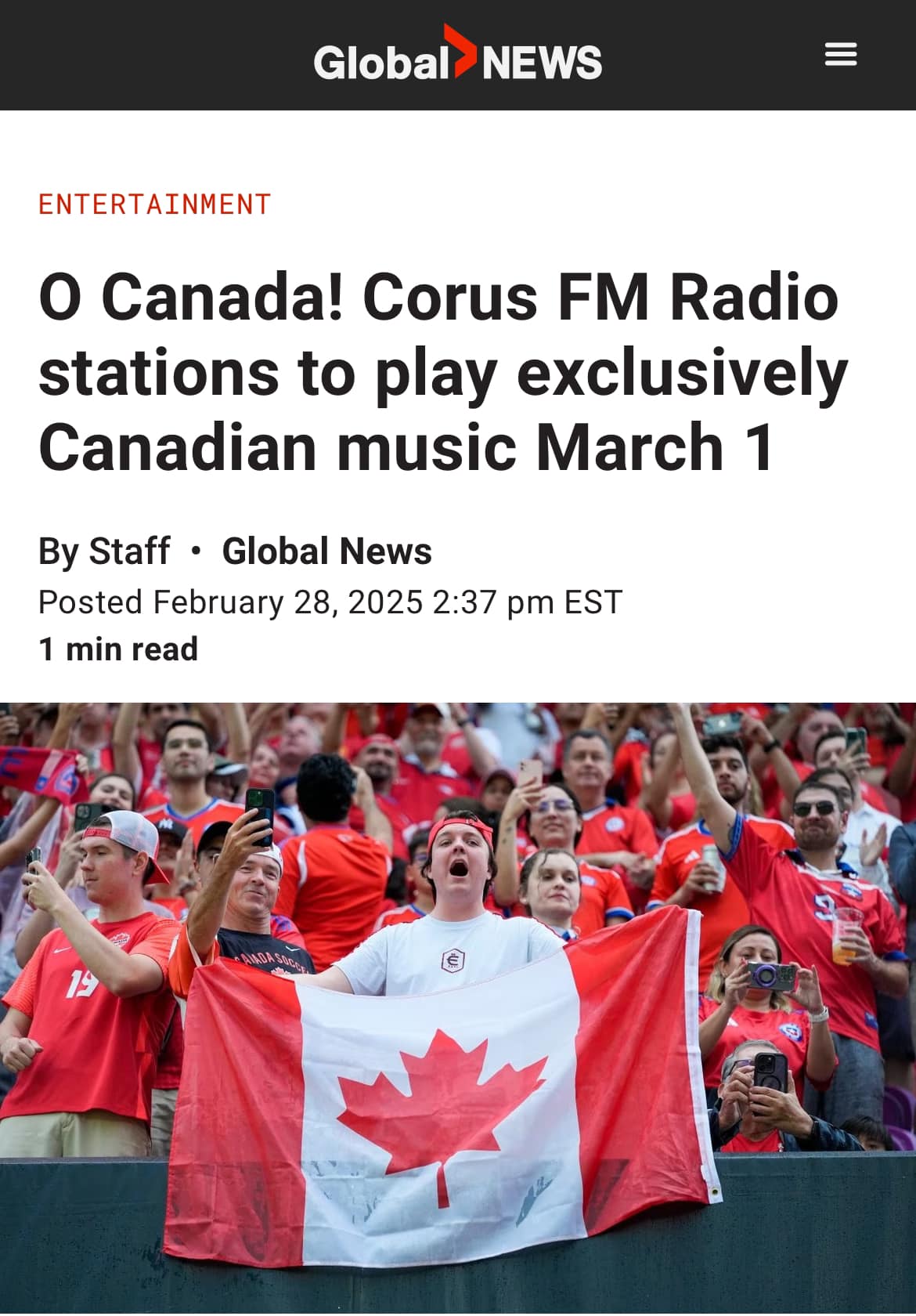 As a stunt, Corus had all their radio stations play exclusively Canadian music. I can get behind this, stunt or not! I still listen to a tonne of music from Canadians.
