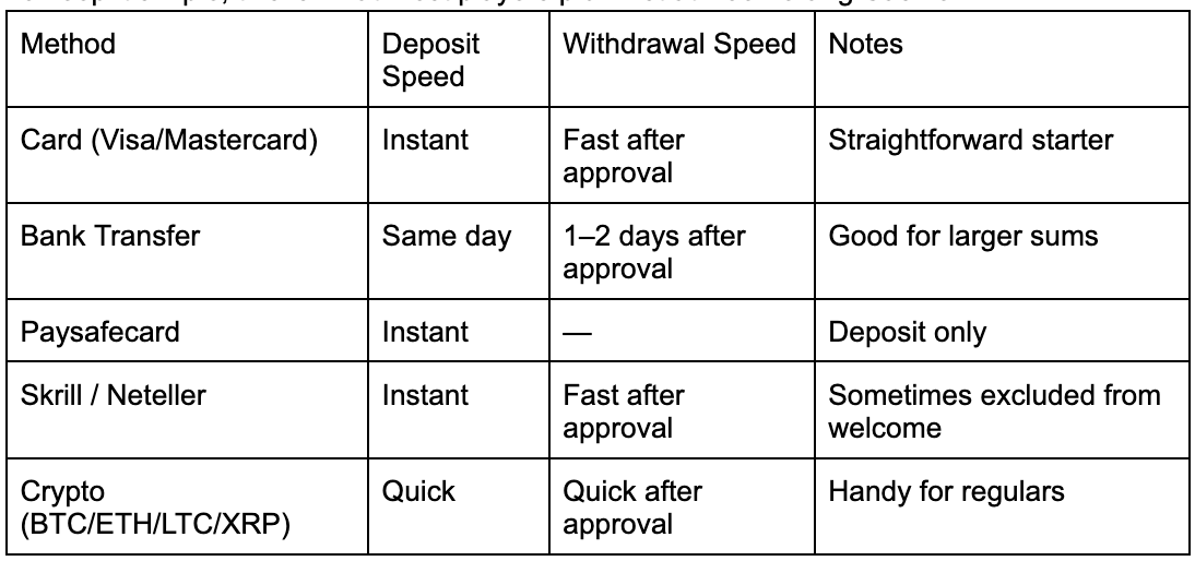 Boomerang Casino supports methods that people here actually use and trust.