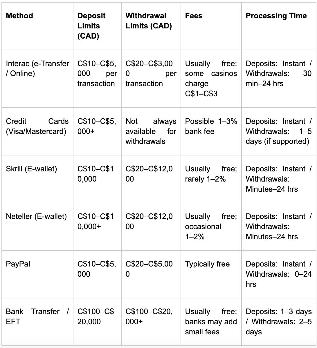 - Spin City Casino – consistent banking performance across Canada.