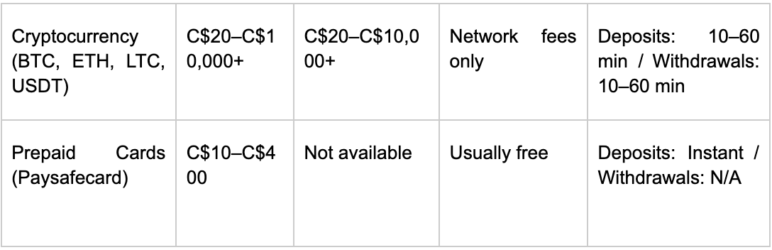 Being able to deposit and cash out money conveniently is what every player needs from an online casino. In Canada, gaming websites let you pay using tons of different local ways, from regular bank cards to online payment apps (e-wallets), prepaid gift-like vouchers, and even digital money like Bitcoin (cryptocurrency).