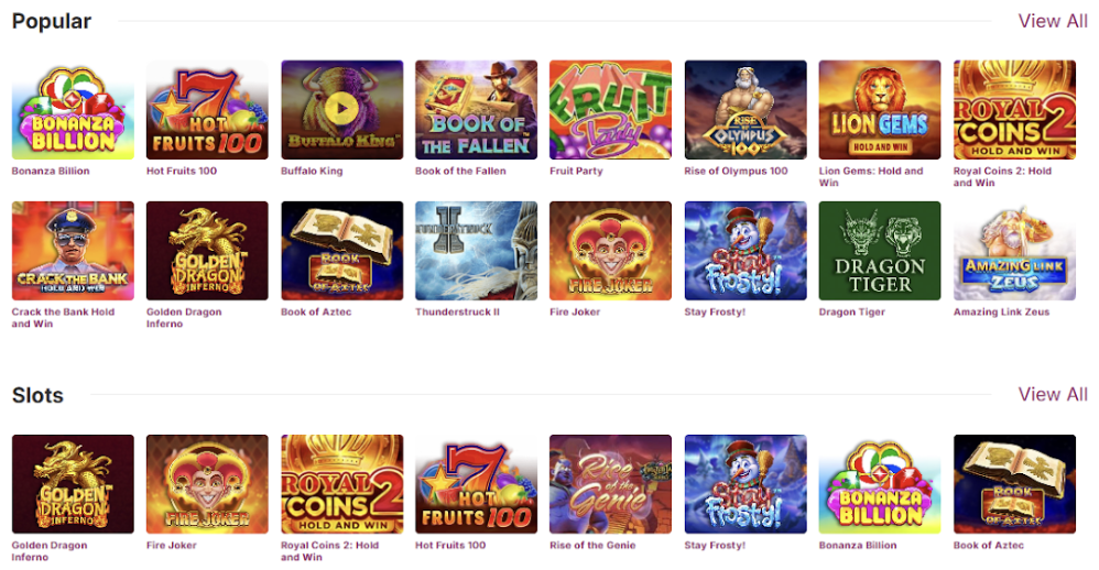 The game catalogue is one of the platform’s strongest elements. Navigation is clean, categories are clearly defined, and the structure is intuitive for new users. Rather than constantly rotating content, the casino maintains a stable core of proven titles while adding selected new releases.