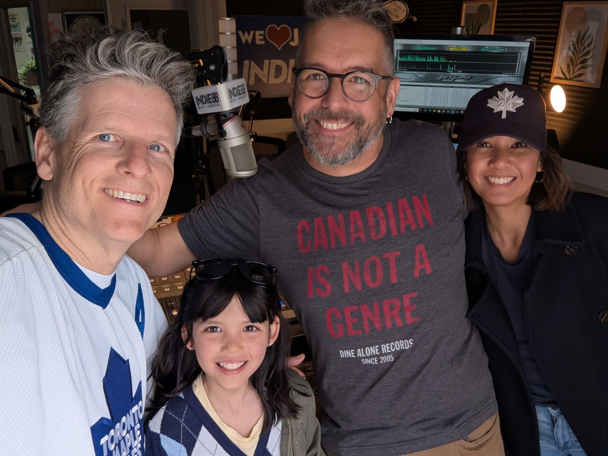 My third born was singing O Canada before today's Marlies game, so I found myself with some time to kill in Liberty Village. As luck would have it, FOTM Bob Willette was on the air at Indie88 from 1-6pm, so we crashed the party. Indie88 Visit